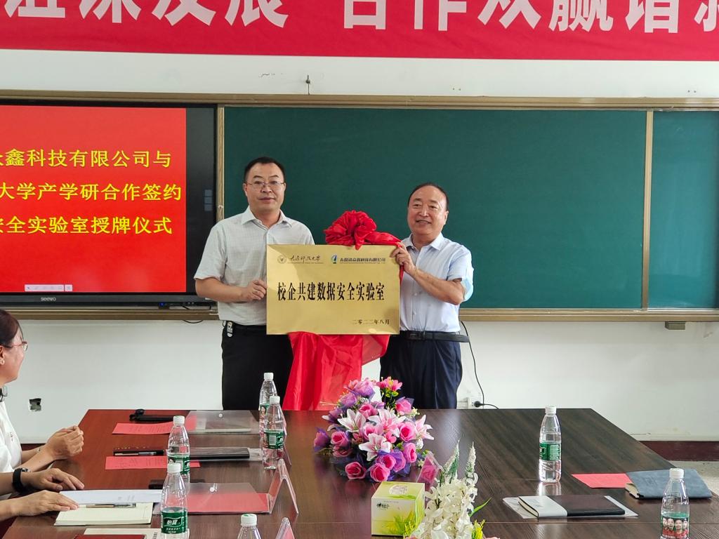 8月15日上午,太原清众鑫科技有限公司与我院的产学研合作暨校企共建数据安全实验室揭牌仪式在我院701会议室举行。太原清众鑫科技有限公司总经理、副总经理等一行四人、学院领导班子成员和部分骨干教师出席了签约仪式,仪式由学院副院长杨斌鑫主持。
