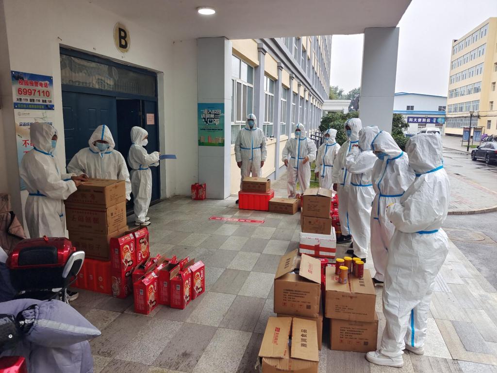 学院书记、院长带头,全体志愿者戴上防护口罩,穿上防护服,化身“送餐大白”,争分夺秒,往返奔波,每日完成4500余份餐食的发放。大家齐心协力,相互配合,照顾学生个人饮食习惯,让学生们吃上了热乎饭。“学校提供的免费餐,太好吃了,老师亲自送过来的,真是暖胃更暖心。老师,辛苦了!”学生们的称赞不绝于耳。