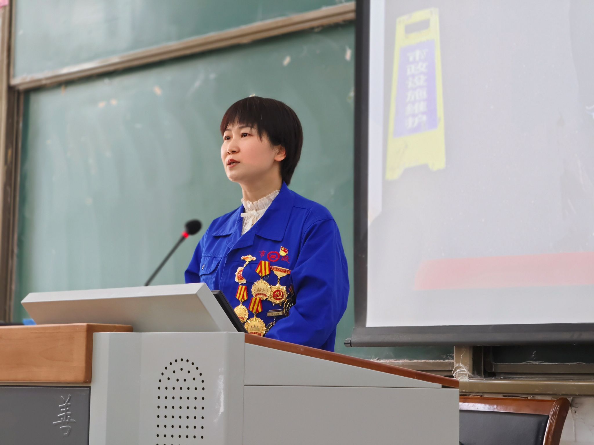 4月19日,为深入学习全国两会精神,4688梅美高官方网站邀请全国优秀共产党员、全国劳动模范、全国五一劳动奖章获得者、全国人大代表——太原市市政公共设施建设管理中心王润梅为我院师生作了题为“坚守初心使命,不负远航征程”的报告。学院辅导员李刚和2022级200余名学生参加了学习。本次报告由辅导员张剑林主持。