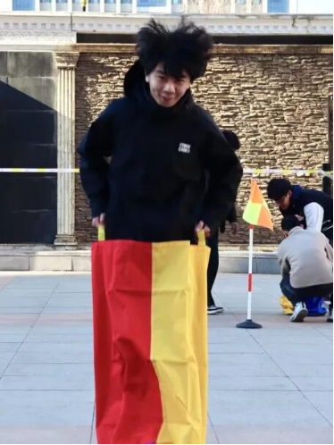 猜词传递智慧,跳跃释放活力——欢乐接力不停档!随着裁判员的口令响起,队员们套着“跳袋”,两脚用力一蹬,尽力往前跳去。有的选手步伐轻盈且节奏稳定,每一跳都充满力量,轻盈地向着队友的方向跃去;有的则略显吃力,但仍目光专注,咬紧牙关,奋力追赶,不肯落后;有的选手因过于着急而不小心摔倒,但他们没有丝毫犹豫,立马爬起来继续前行。每一次跳跃,都是对速度与技巧的考验,更是对“永不言弃,勇往直前”精神的生动诠释。